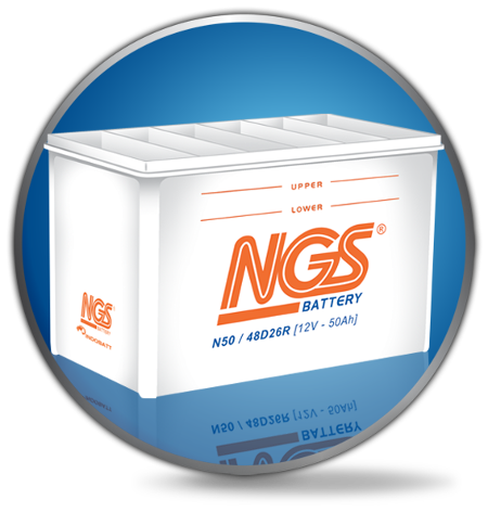 NGS battery overruns the conventional battery technology which apply the use of high antimonial content in the lead alloy. Low antimonial lead with selenium plus grid is designed to minimize the electrical resistance and to increase cranking performance.